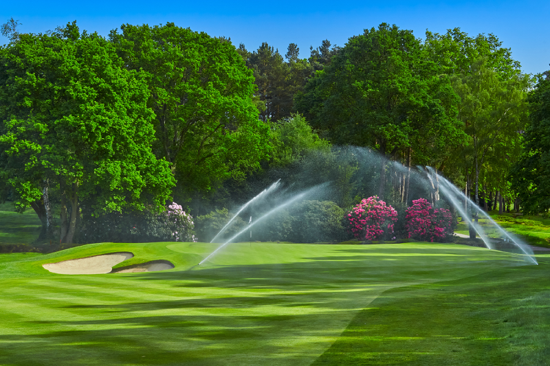 Hệ thống tưới sân golf cần được điều chỉnh khi thời tiết thay đổi trong suốt mùa hè. Những cơn mưa đầu tháng 6 có thể làm giảm lượng nước tưới, trong khi những đợt nắng nóng vào tháng 7 đòi hỏi phải tưới nhiều hơn. Việc tưới nước phù hợp với lượng mưa giúp giữ cho bãi cỏ luôn ở trạng thái tốt nhất. Thời điểm tưới nước cũng quan trọng; tưới nước vào lúc bình minh giúp giảm lượng nước mất đi do nắng và gió vào giữa trưa. Hệ thống tưới nước vào đêm muộn hoặc sáng sớm giúp bãi cỏ có cả ngày để khô trước khi chơi.